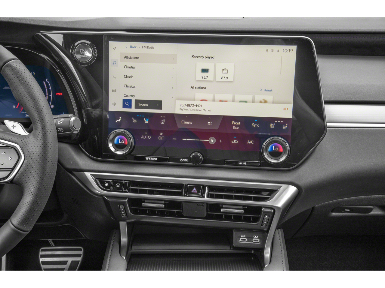 - Radio: Lexus Interface w/9.8" HD Touchscreen Display -inc: 12 speaker premium sound system, navigation system, advanced voice command casual-language voice recognition system, Bluetooth® hands free phone and automatic phonebook download capabilities, HD Radio, Apple CarPlay, Android Auto and Google Assistant, Amazon Alexa, Siri Eyes Free mode, navigation equipped vehicles, MID data sharing, voice recognition and cache radio