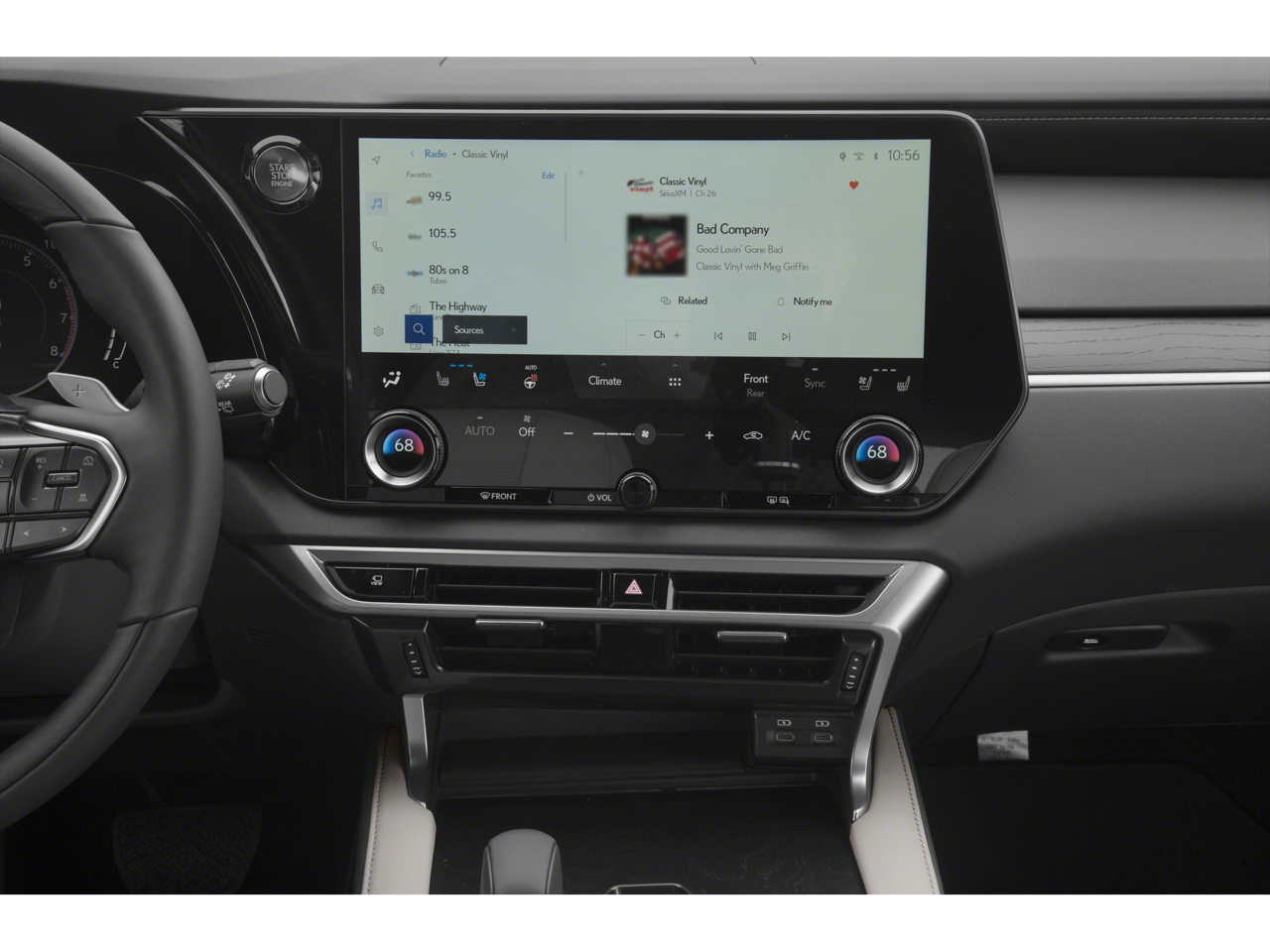 - Radio: Lexus Interface w/9.8" HD Touchscreen Display -inc: 12 speaker premium sound system, navigation system, advanced voice command casual-language voice recognition system, Bluetooth® hands free phone and automatic phonebook download capabilities, HD Radio, Apple CarPlay, Android Auto and Google Assistant, Amazon Alexa, Siri Eyes Free mode, navigation equipped vehicles, MID data sharing, voice recognition and cache radio