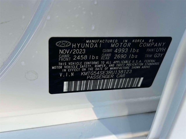 Uyuni White 2024 Genesis G70 3.3T Sport Prestige AWD 8-Speed Automatic 3.3L V6 DGI DOHC 24V ABS brakes, Alloy wheels, Electronic Stability Control, Front dual zone A/C, Heated door mirrors, Heated front seats, Illuminated entry, Low tire pressure warning, Navigation System, Power moonroof, Remote keyless entry, Traction control.