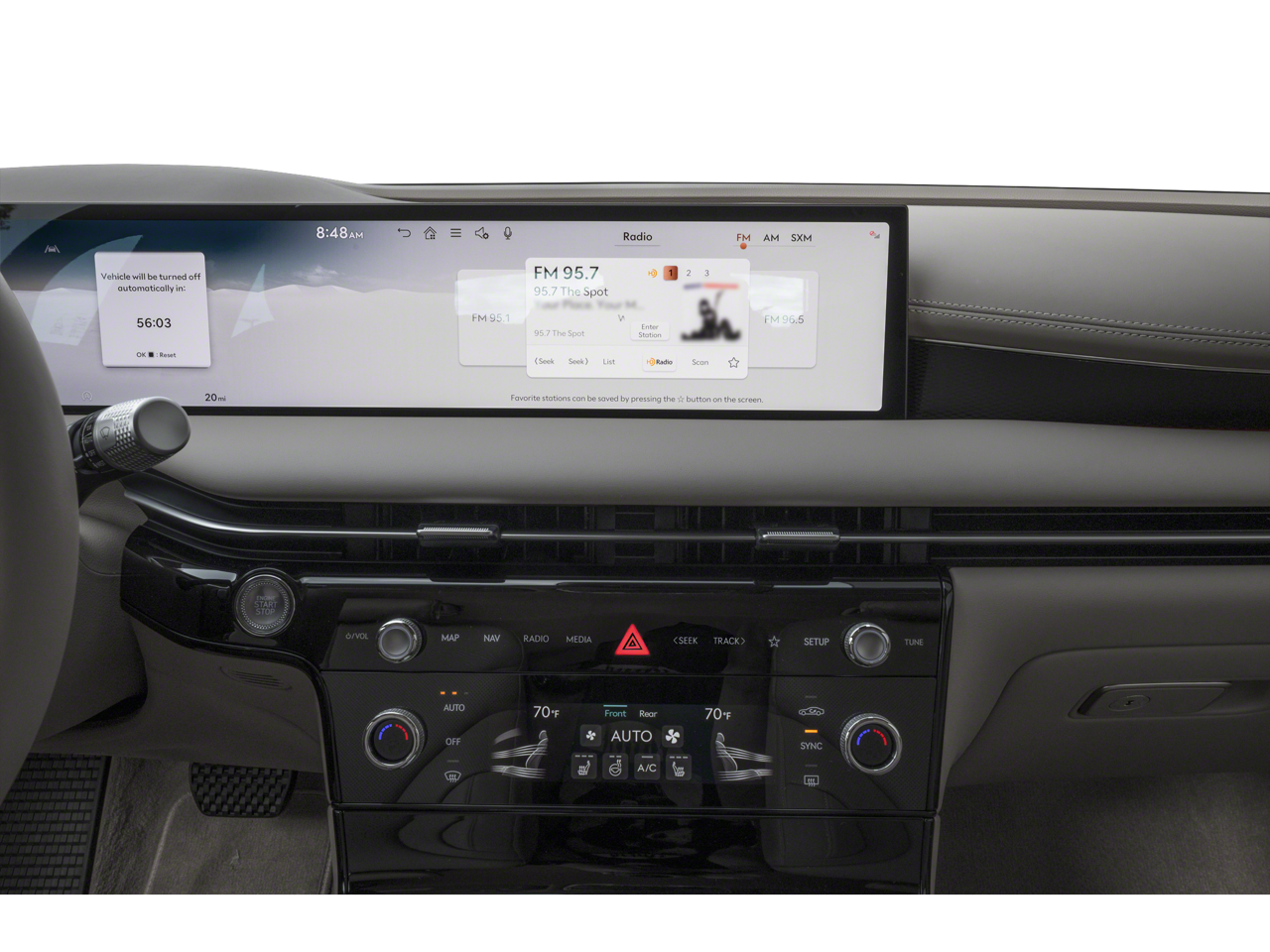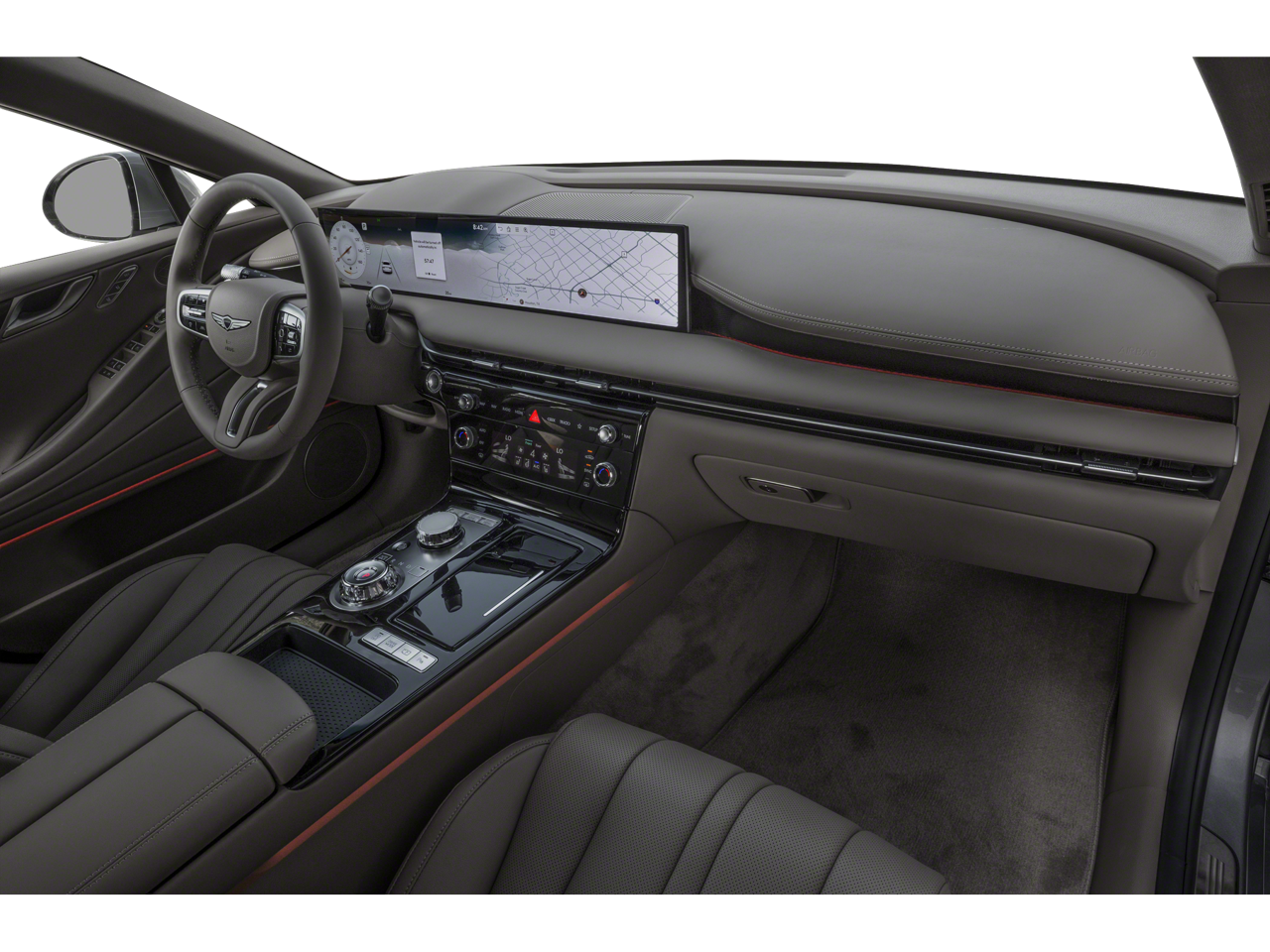 - Radio: AM/FM/HD/SiriusXM Audio System -inc: premium audio w/12 speakers and internal Mobis amplifier, 27" high-definition OLED display and navigation system, SiriusXM Radio w/90-day trial subscription (not available in AK or HI), wireless Apple CarPlay, wireless Android Auto, fingerprint authentication system, Genesis Connected Services, USB, Bluetooth® hands-free phone system w/audio streaming and Wi-Fi hotspot