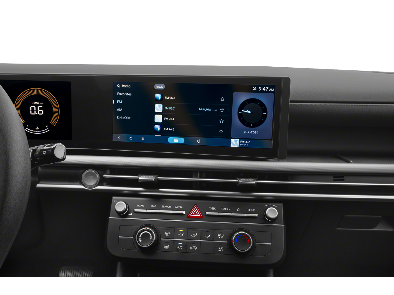 - Radio: AM/FM/HD Audio System -inc: 12.3" color touchscreen display, 6 speakers, SiriusXM satellite radio system (3-month trial subscription), wireless Apple CarPlay and Android Auto integration, controller OTA update capability, Blue Link connected car system and USB connectivity